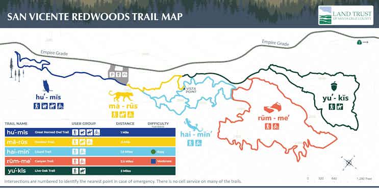 San Vicente Redwoods Trail Map – In this episode of OpenRoad, we’ll get a sneak peek of the Great Redwood Trail – a grand trail beginning to take shape from San Francisco Bay to Humboldt Bay. We’ll also ride along a scenic . And while that restoration work is going on, managers at the San Vicente Redwoods are pioneering a bio-friendly way to dispose of the dead and charred wood — an innovative method that’s also .